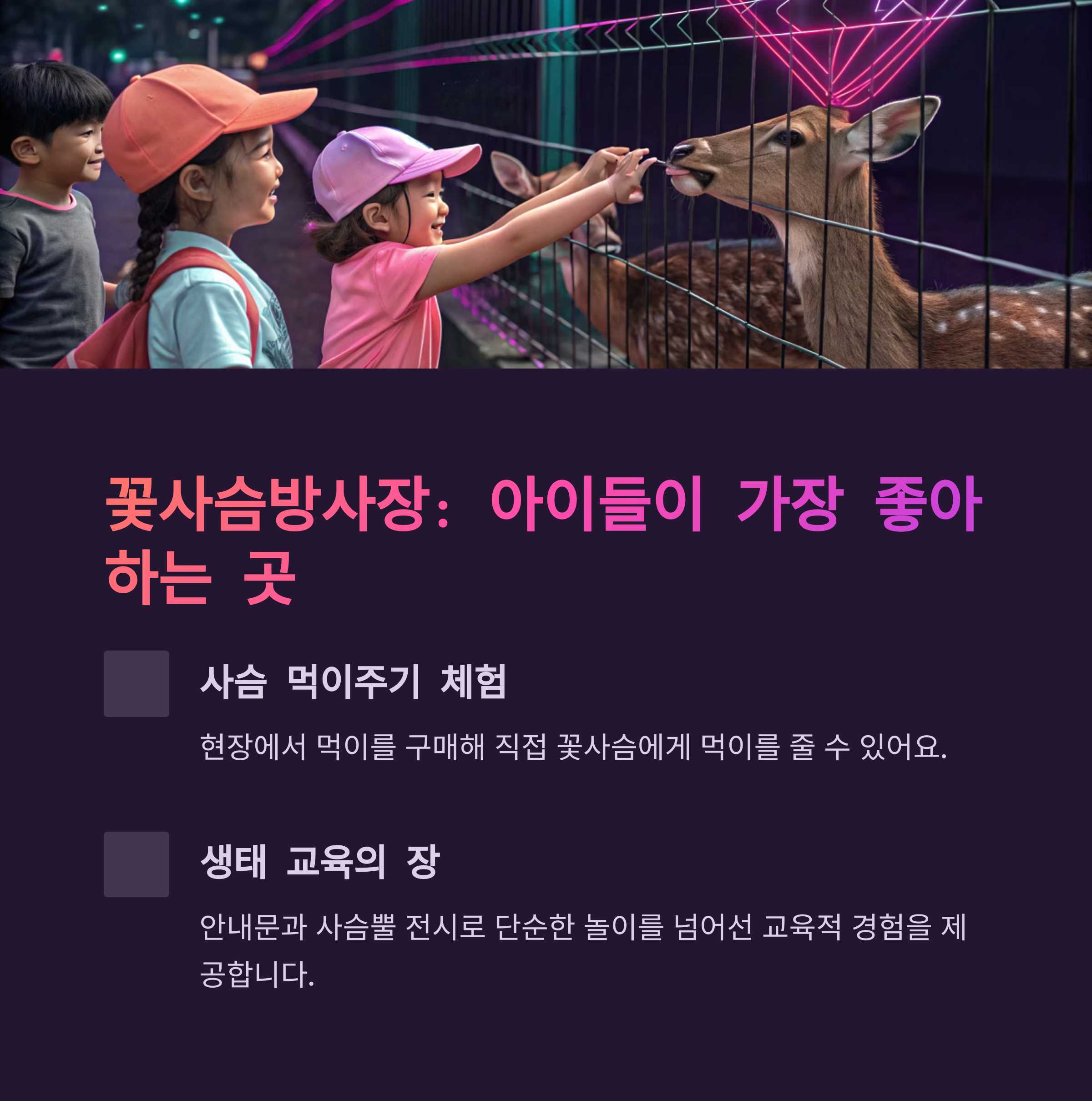 1. 아이가 가장 좋아하는 꽃사슴방사장: 실제 사슴에게 먹이 주는 특별한 체험