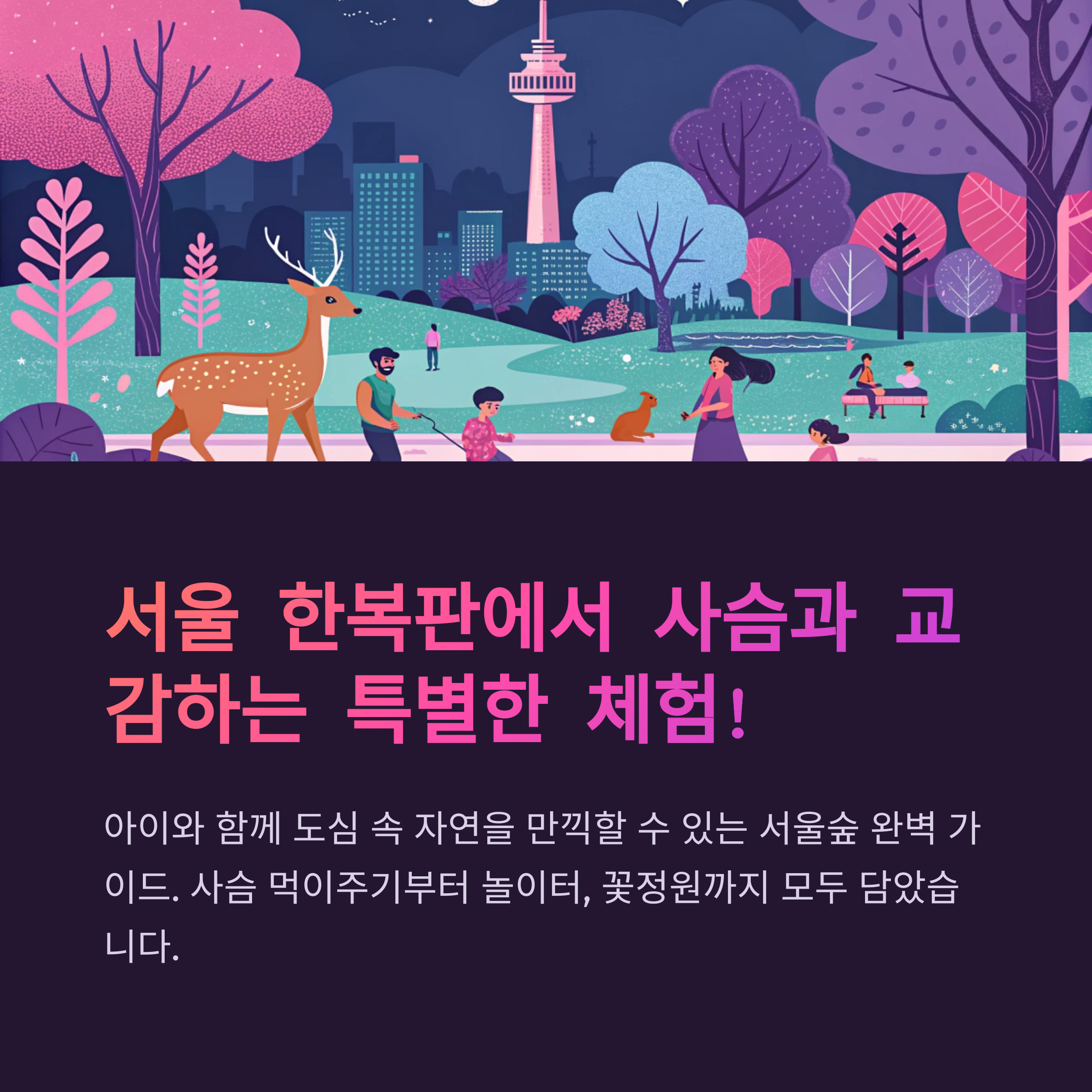 도심 속에서 아이와 함께 자연을 만끽할 수 있는 특별한 장소를 찾고 있다면, 서울 성수동에 위치한 서울숲은 더없이 완벽한 선택이다. 단순히 산책을 위한 공원이 아니라, 사슴과 교감할 수 있는 동물 체험장, 실내에서 다양한 곤충과 식물을 만나는 곤충식물원, 아이들이 마음껏 뛰어놀 수 있는 놀이터, 계절별로 변화하는 아름다운 꽃정원까지 다양한 즐길 거리가 한 곳에 모여 있다. 특히 어린아이와 함께하는 가족 단위 방문객이라면, 체험형 콘텐츠와 안전한 자연환경 덕분에 하루 종일 머물러도 지루할 틈이 없다. 이 글에서는 서울숲을 아이와 함께 보다 알차게 즐길 수 있는 꿀팁과 주요 명소를 정리해 보았다.